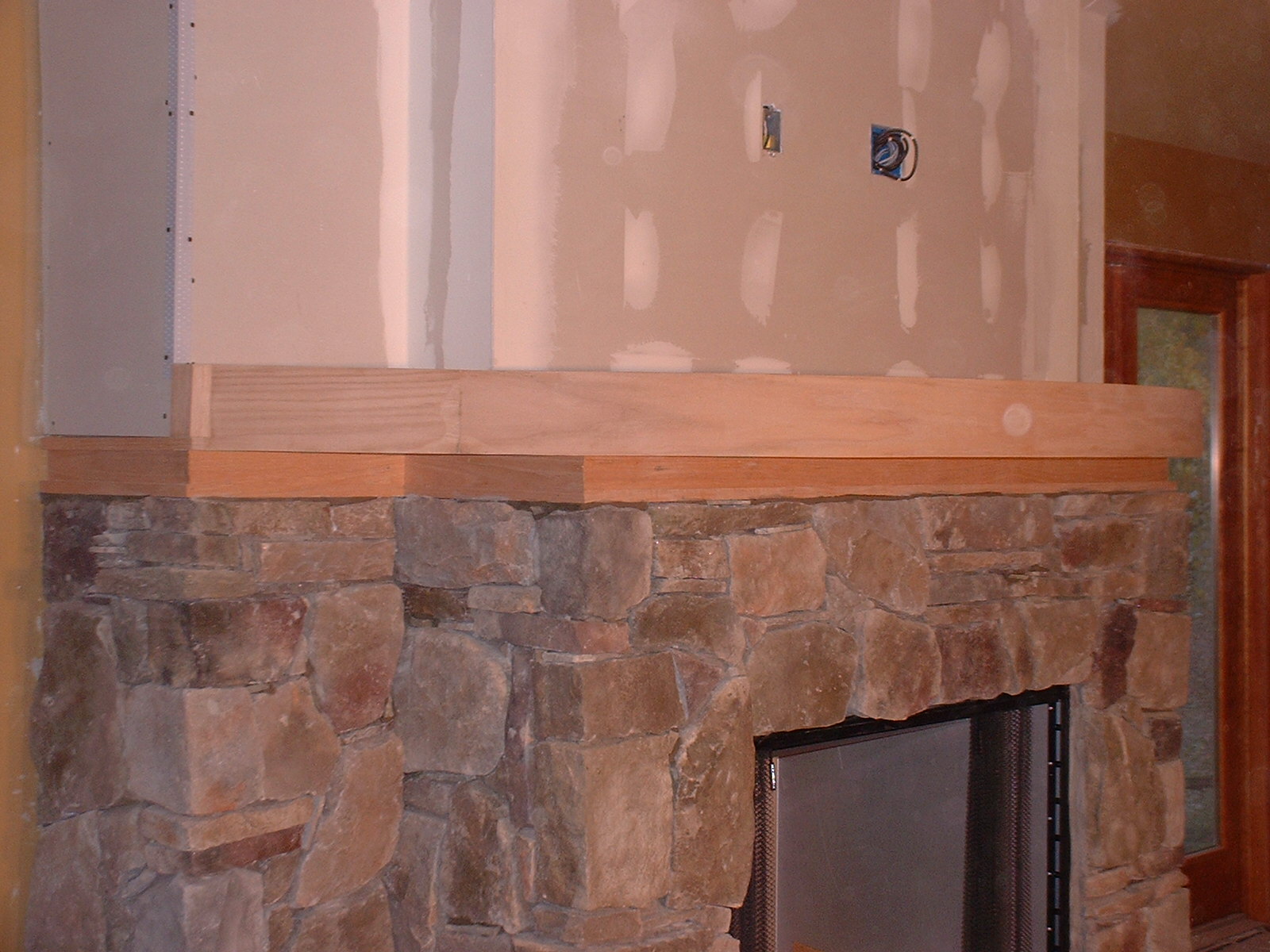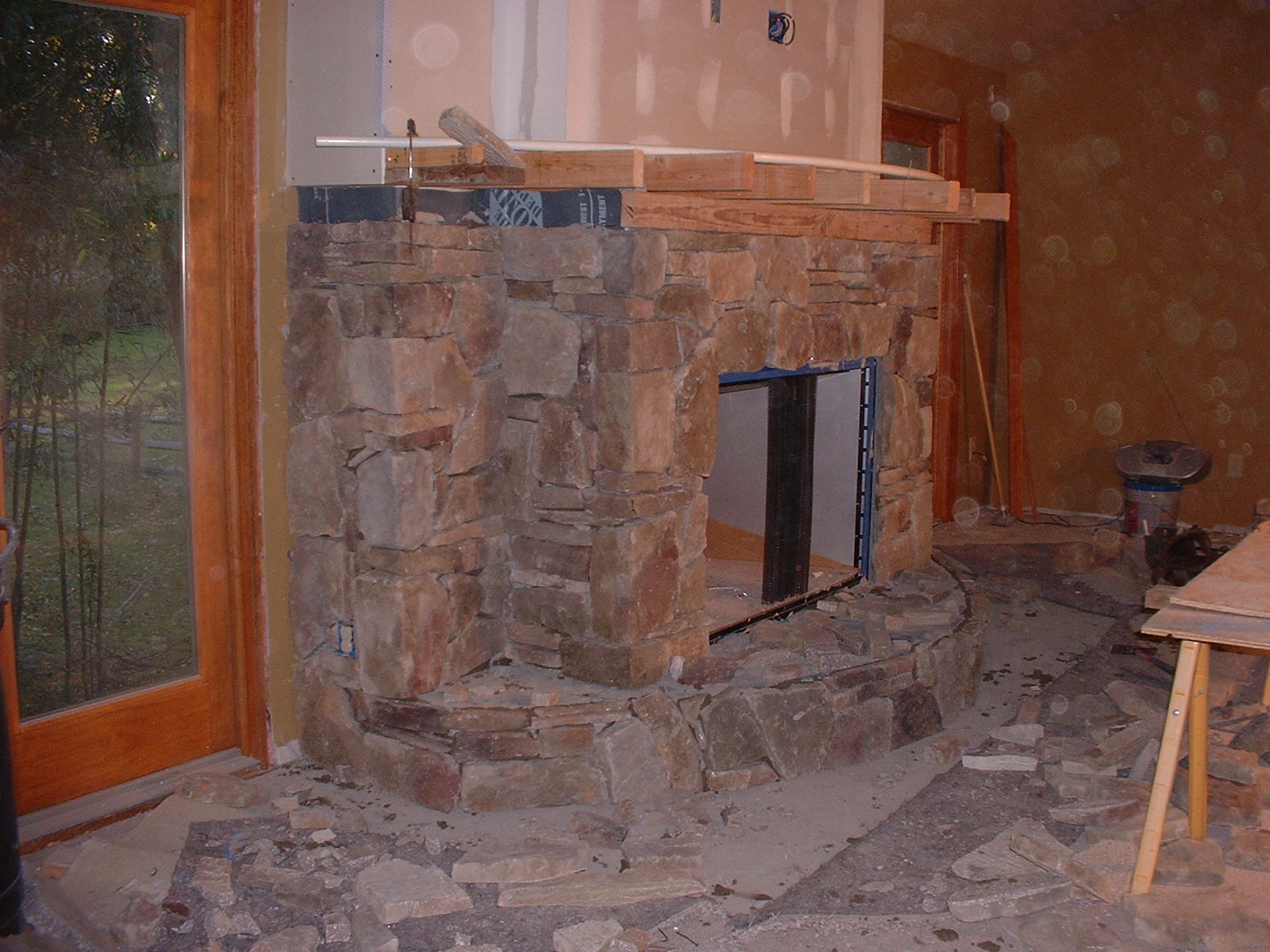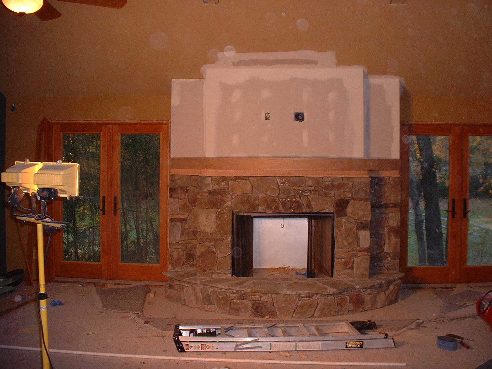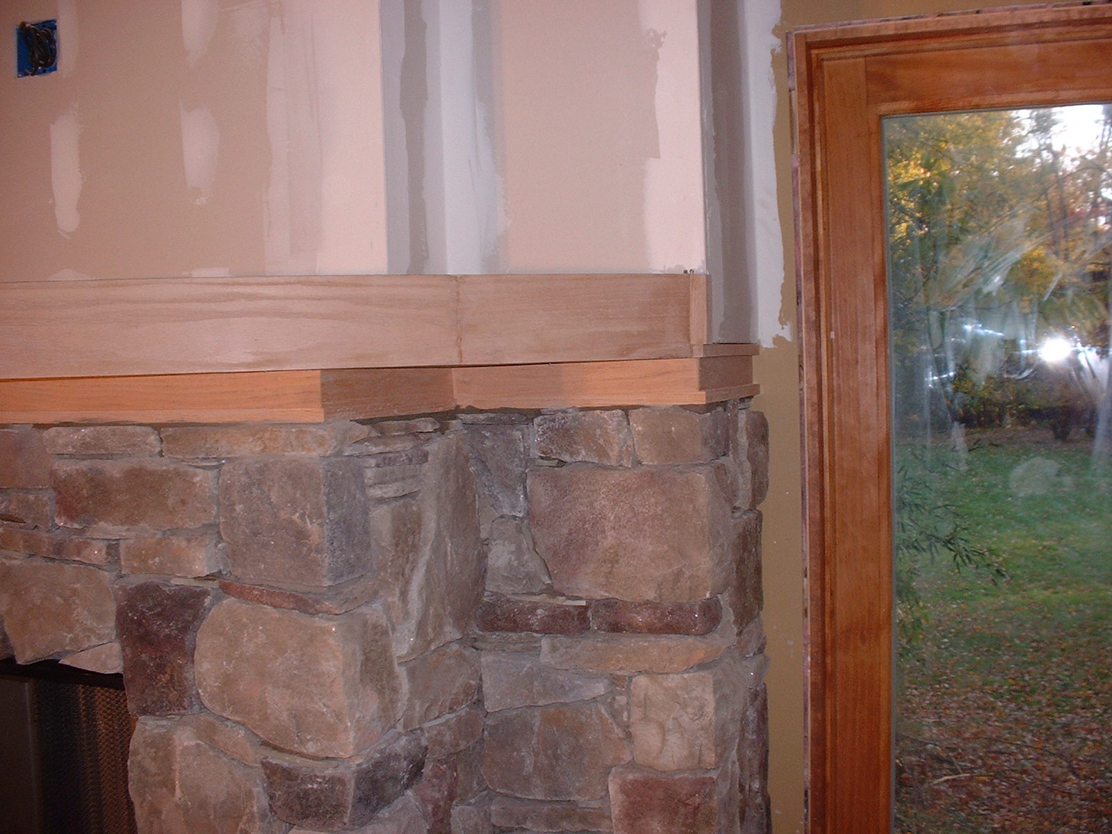 | On this job, in Colts Neck NJ. we were called to do some work on an existing room. The owners, Chris & Kathy Hoeker, wanted the room updated. The room was an addition to the house before they bought it. Upon removing the T1-11 from the interior, they found that the room was poorly insulated. They wanted us to re-insulate and sheetrock the room. They also showed me a picture of a fireplace from a magazine, and asked if I could build one just like that for them. I, of course, said "yes". It was a real challange, with there being no prints or details of any kind to work from. After many pieces of yellow scrap paper, and pencil drawings on pieces of wood, we finally finished the fireplace. The cultured stone was a challange also because we blended two kinds of stone to get the true feel of the picture. On this page, I'm not going to put pictures of the insulation or sheetrock, just the painstaking process of building this fireplace from a picture. As always click on each picture to enlarge. |