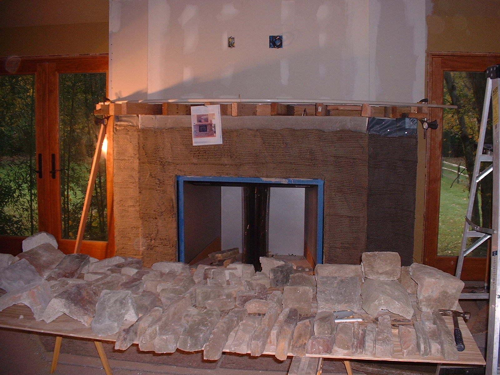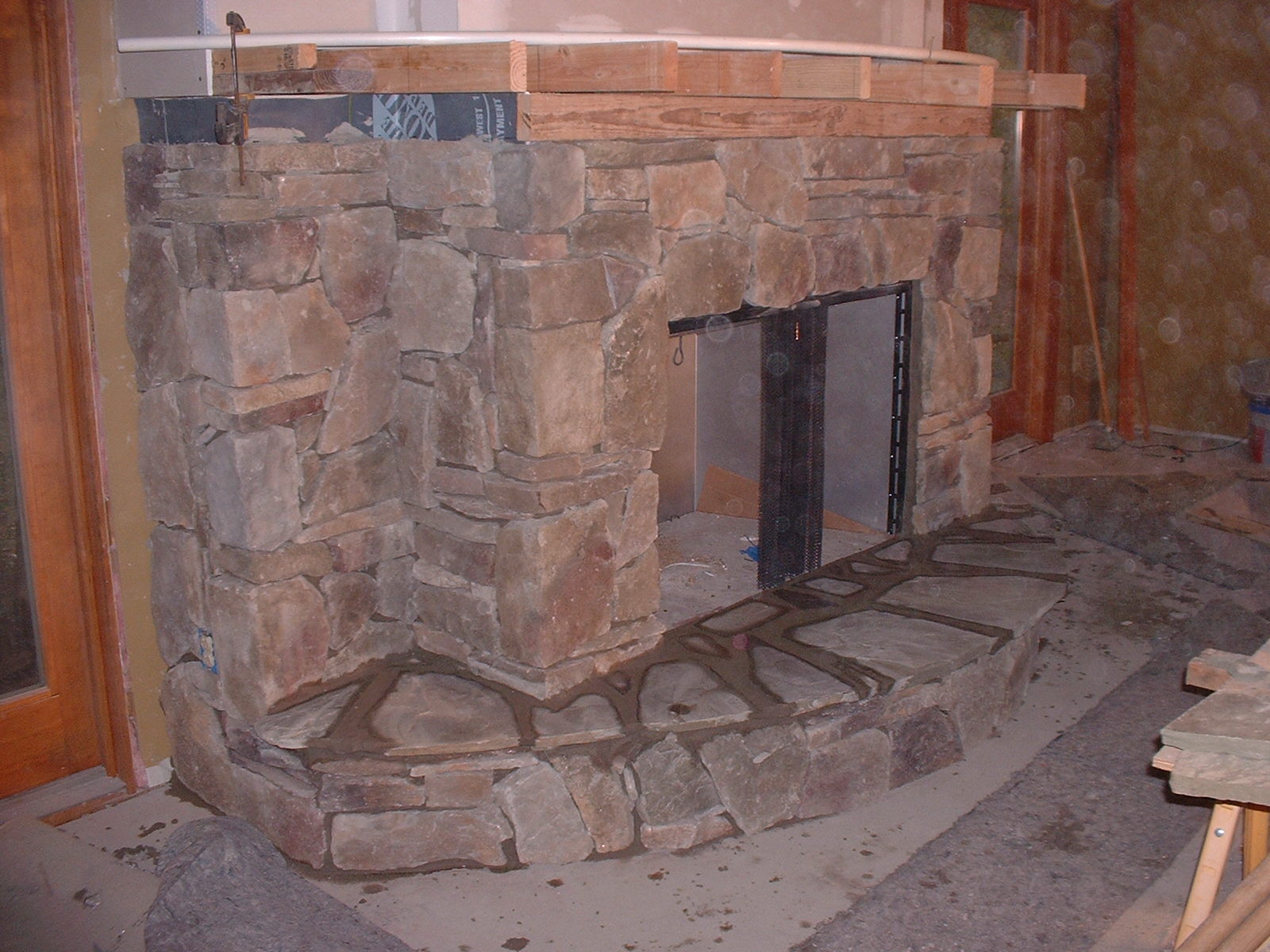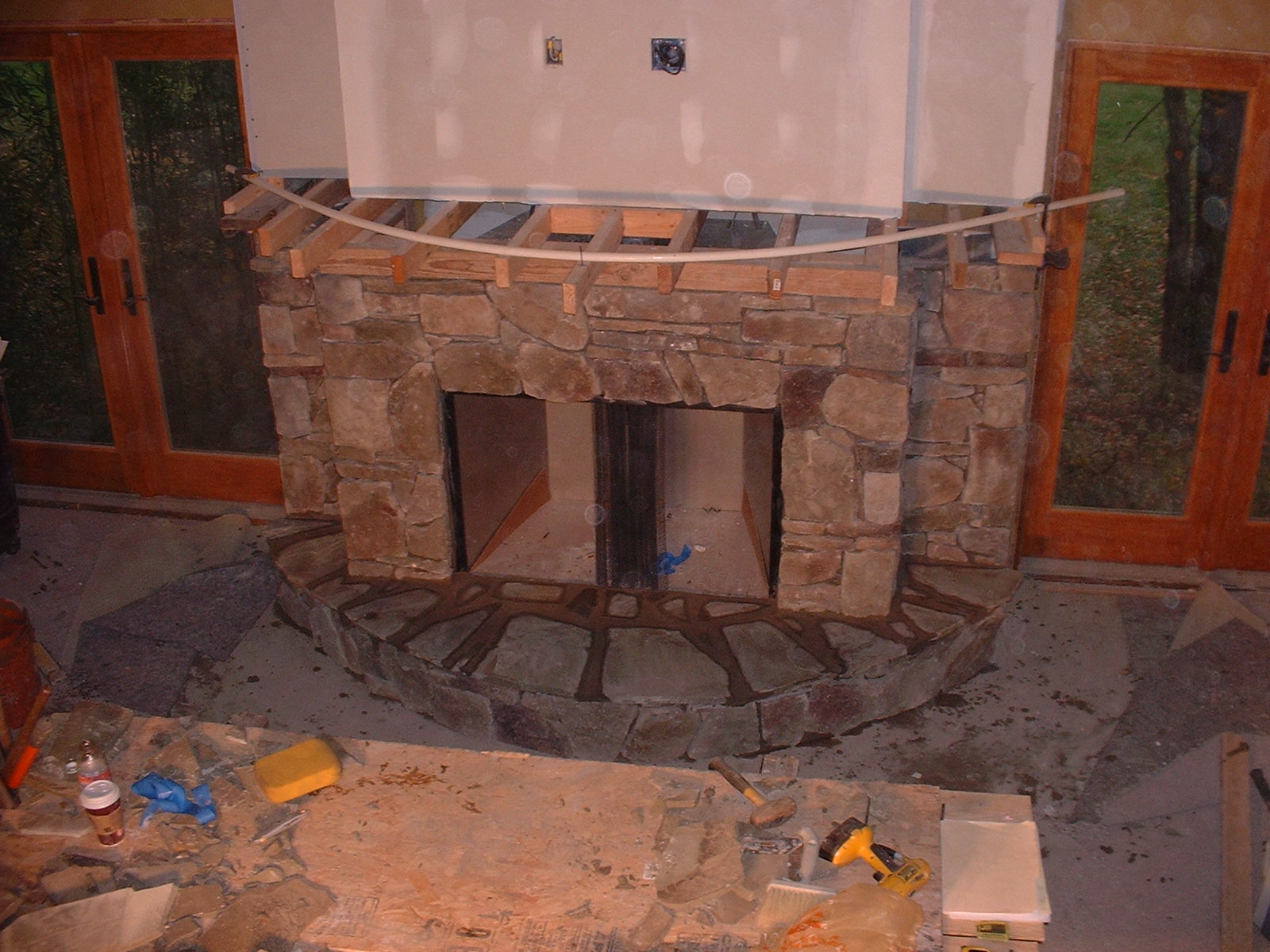 | On this job, in Colts Neck NJ. we were called to do some work on an existing room. The owners, Chris & Kathy Hoeker, wanted the room updated. The room was an addition to the house before they bought it. Upon removing the T1-11 from the interior, they found that the room was poorly insulated. They wanted us to re-insulate and sheetrock the room. They also showed me a picture of a fireplace from a magazine, and asked if I could build one just like that for them. I, of course, said "yes". It was a real challange, with there being no prints or details of any kind to work from. After many pieces of yellow scrap paper, and pencil drawings on pieces of wood, we finally finished the fireplace. The cultured stone was a challange also because we blended two kinds of stone to get the true feel of the picture. On this page, I'm not going to put pictures of the insulation or sheetrock, just the painstaking process of building this fireplace from a picture. As always click on each picture to enlarge. |
