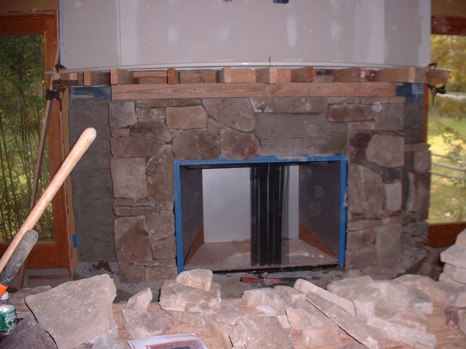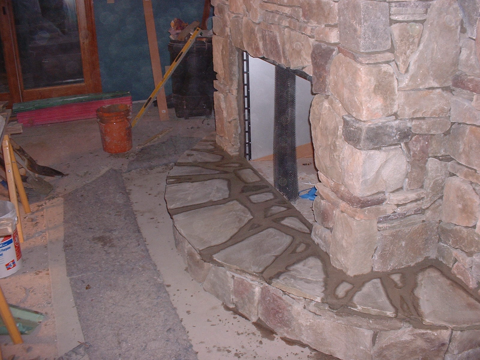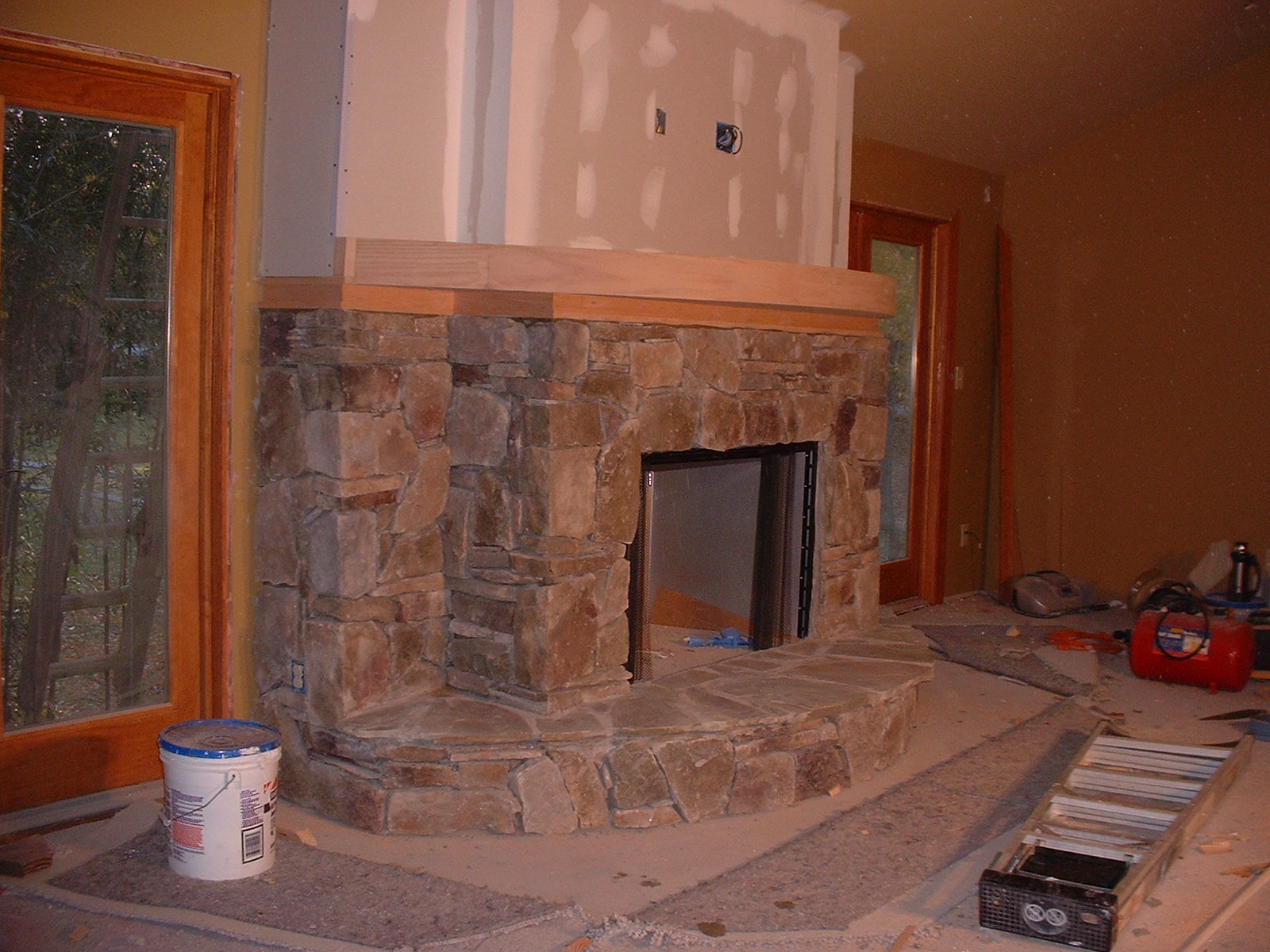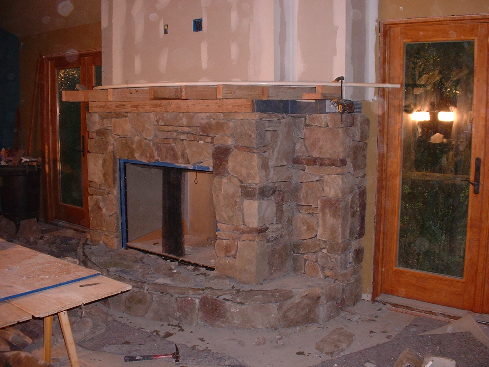 | On this job, in Colts Neck NJ. we were called to do some work on an existing room. The owners, Chris & Kathy Hoeker, wanted the room updated. The room was an addition to the house before they bought it. Upon removing the T1-11 from the interior, they found that the room was poorly insulated. They wanted us to re-insulate and sheetrock the room. They also showed me a picture of a fireplace from a magazine, and asked if I could build one just like that for them. I, of course, said "yes". It was a real challange, with there being no prints or details of any kind to work from. After many pieces of yellow scrap paper, and pencil drawings on pieces of wood, we finally finished the fireplace. The cultured stone was a challange also because we blended two kinds of stone to get the true feel of the picture. On this page, I'm not going to put pictures of the insulation or sheetrock, just the painstaking process of building this fireplace from a picture. As always click on each picture to enlarge. |